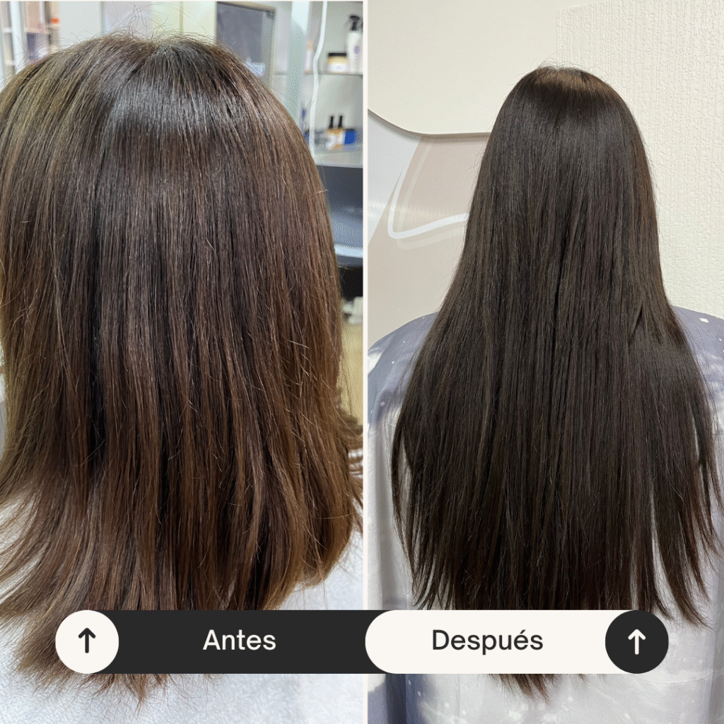 Seleccionamos un cabello acorde a su textura y trabajamos mechas en su mismo tono para integrarlas de forma natural.